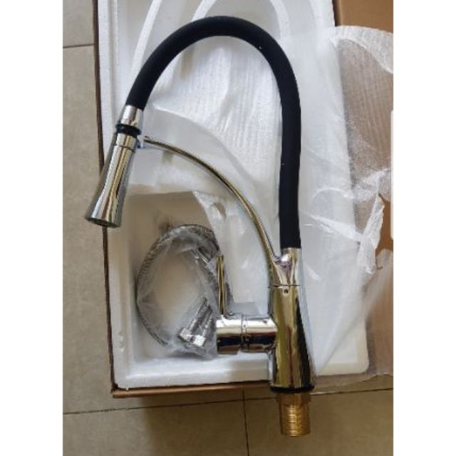 Vòi chậu rửa bát nóng lạnh dây màu đen
