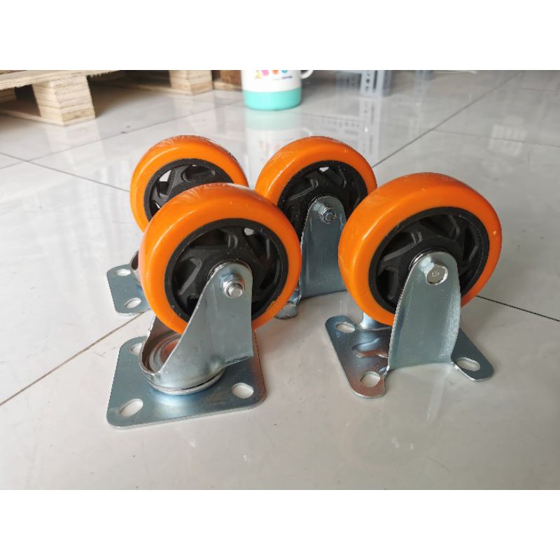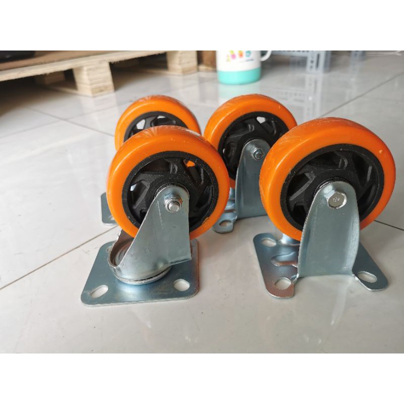 ☑️ Mặt sàn bằng nhựa PP màu xanh, có đường gân chống trơn trượt. Bánh xe bằng nhựa PP và TPR chống ồn.