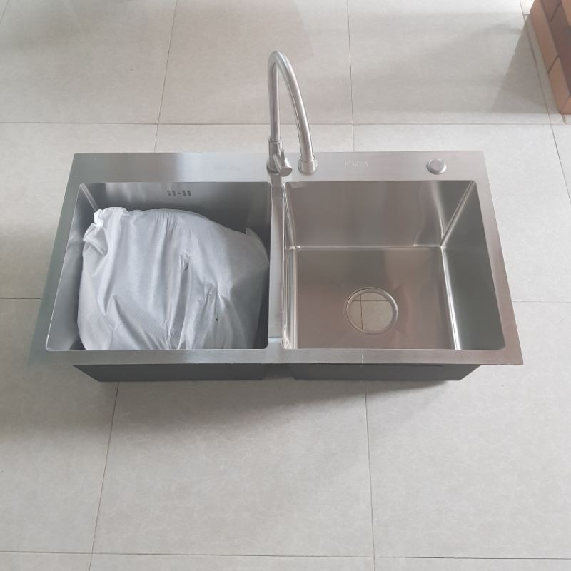 Com bo chậu đúc korea hoặc hatasuka(tùy thời điểm) kích thước 8245 và vòi lạnh + tặng bộ.lh.0988515377.