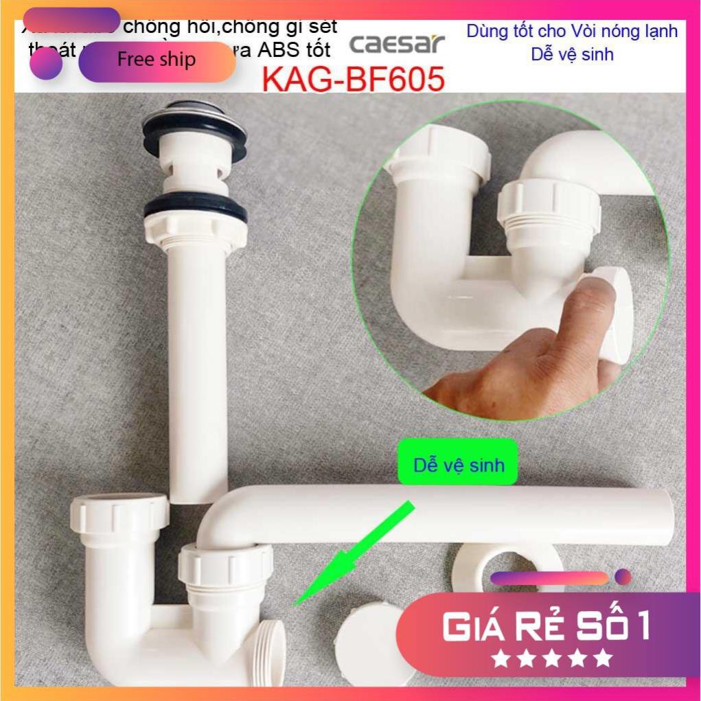 Bộ xả nhấn nhựa Caesar, bộ xả lavabo cho chậu rửa mặt sứ KAG-BF605 sản xuất bởi công ty thiết bị vệ sinh Caesar Đài Loan, đầu xả bọc bằng inox 304, ống thải sản xuất bởi nhựa cao cấp ABS, chống ố vàng, sử dụng tốt cho mọi vùng miền, nhất là các vùng nước phèn, vùng biển mặn, không bị ô xi hóa