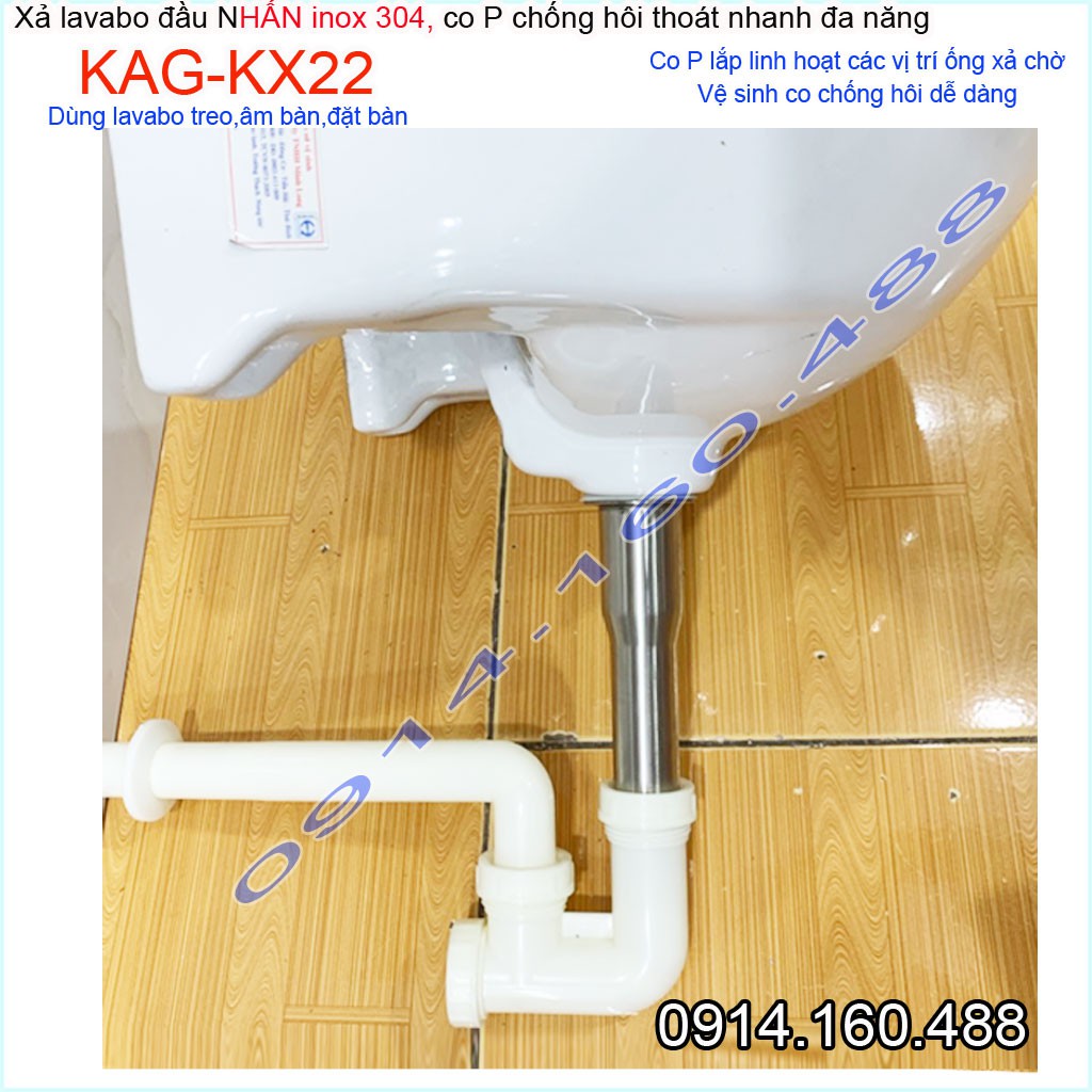 Ưu điểm: xả lavabo cho chậu sứ KAG-KX22 độ bền cao, xả nhấn có lước lọc cặn bẩn như tóc, có thể vệ sinh sễ dàng, ống thải chữ P ngăn mùi hôi tuyệt đối, có van vệ sinh bầu lắng cặn bẩn dễ dàng.