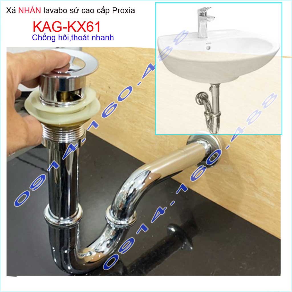 Xả lavabo Proxia KAG-KX61, bộ xả nhấn lavabo cao cấp inox dày sáng bóng- lắp trực tiếp trên các loại lavabo sứ sản xuất tại Việt Nam