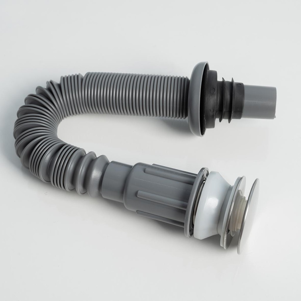 Bộ xả lavabo nhấn ruột gà xám nhựa ABSChất liệu: Đầu bộ xả được làm từ Inox 304, ti nhấn bằng thau, lò xo bằng thép. Ống xả được làm từ chất liệu ABS, cứng, lớp nhựa dày. Phần thân được thiết kế xếp gấp thu ngắn hoặc kéo dài, chiều dài khi thu gọn là 40cm, chiều dài kéo ra tối đa tới 95cm