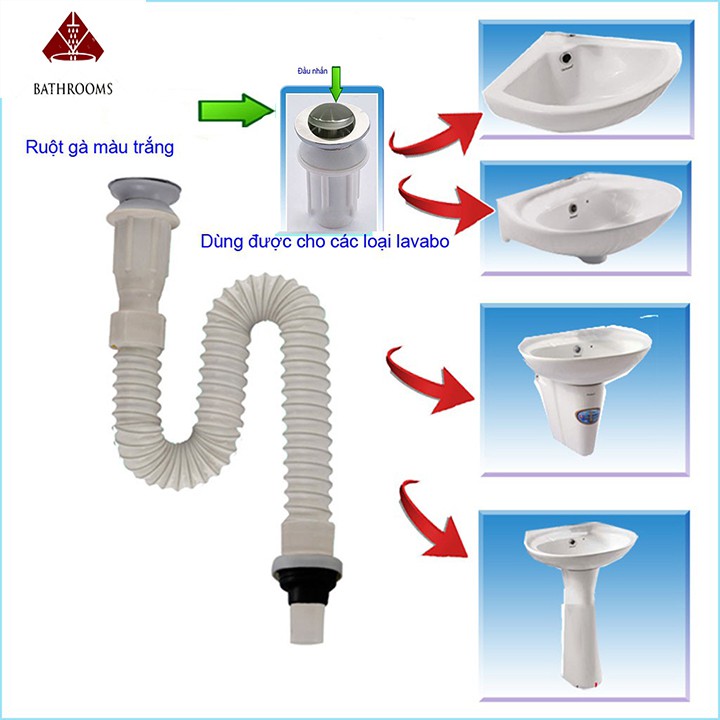 Bộ xả lavabo ruột gà nhựa màu trắng hoặc màu xám- Dùng lắp xả nước chậu rửa tay lavabo, có nút lật hoặc nhấn để giữ nước, phần ruột gà có thể kéo dài theo ý muốn,rất tiện lợi, dễ lắp đặt