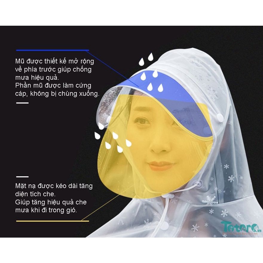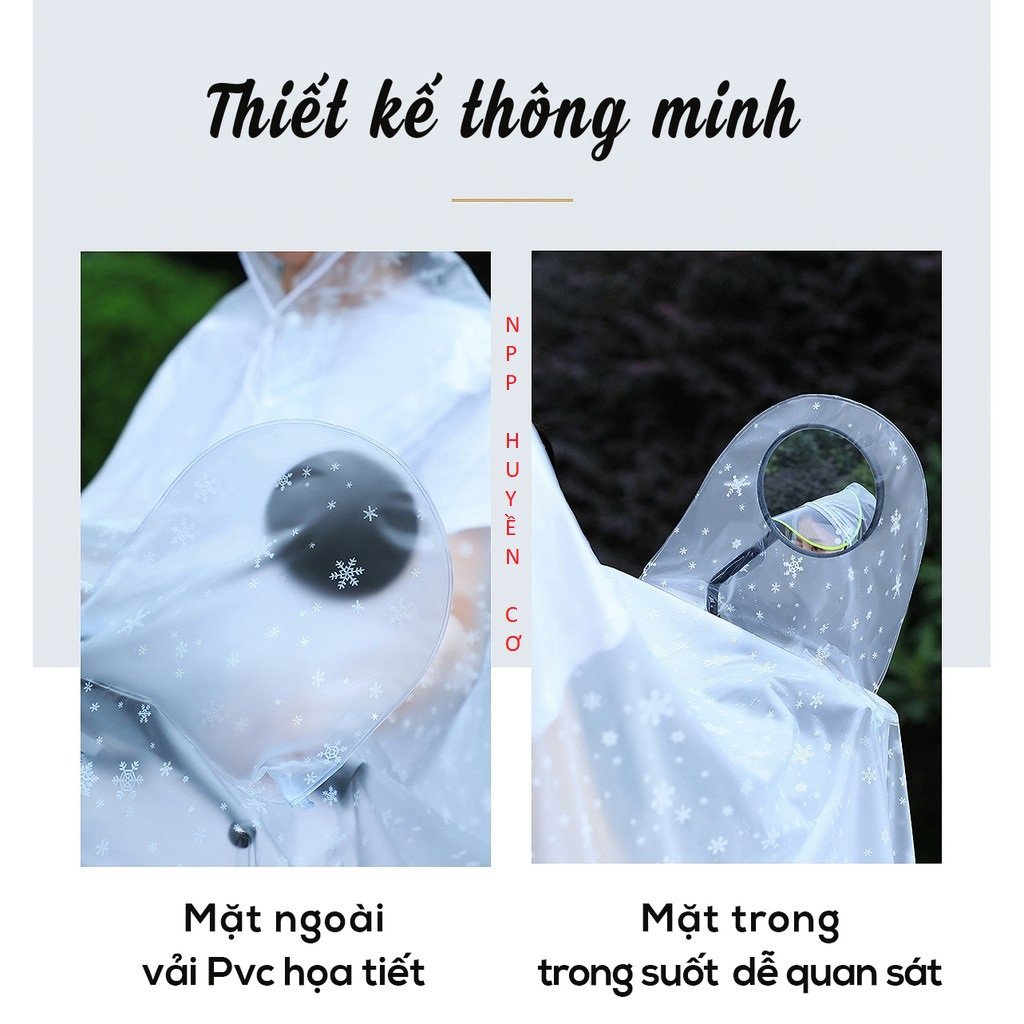 Áo Mưa Trong Suốt họa tiết Bông Tuyết Chúc Sen Mẫu Mới Có Kính và Chụp Gương Bền Đẹp, sang trọng