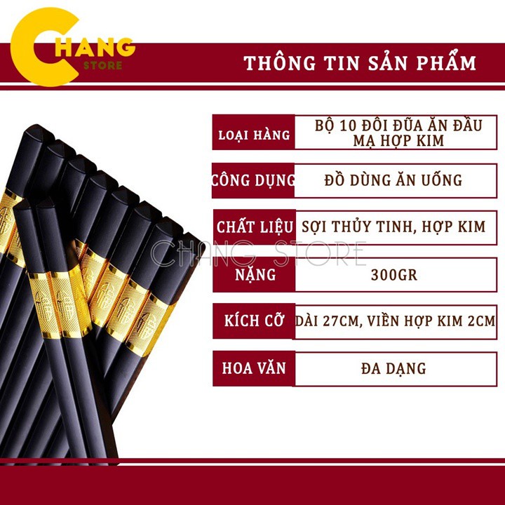 Giới thiệu [Xả Lỗ] 10 Đôi Đũa Mạ Vàng Hàn Quốc - Đũa Nhựa Đen Nhật Cao Cấp Chống Trơn Chống Mốc Chịu Nhiệt