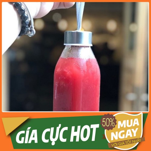 [XÃ LỖ] CHAI THỦY TINH VUÔNG NẮP CÓ DÂY ĐỰNG SINH TỐ 350ML