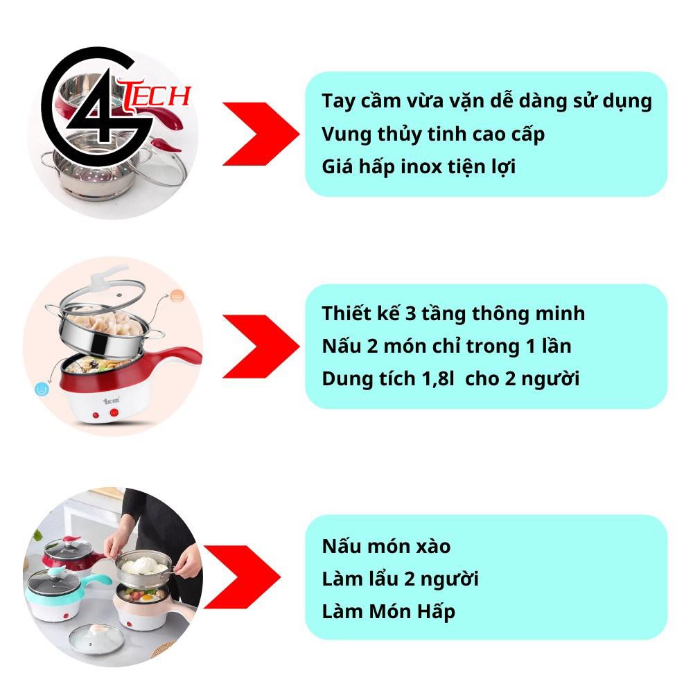 - Nồi nấu mini đa năng siêu tốc giúp thực hiện công việc nấu nướng một cách nhanh chóng & hiệu quả, tiết kiệm thời gian đến mức tối đa.