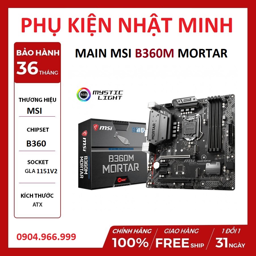 Máy tính & Laptop > Linh Kiện Máy Tính > Mainboard - Bo Mạch Chủ || [Xả lỗ siêu rẻ] Mainboard MSI B360M MORTAR (Intel B360, LGA 1151-v2, M-ATX, 4 khe RAM DDR4)- Hàng chính hãng BH 36 thángCòn hàng