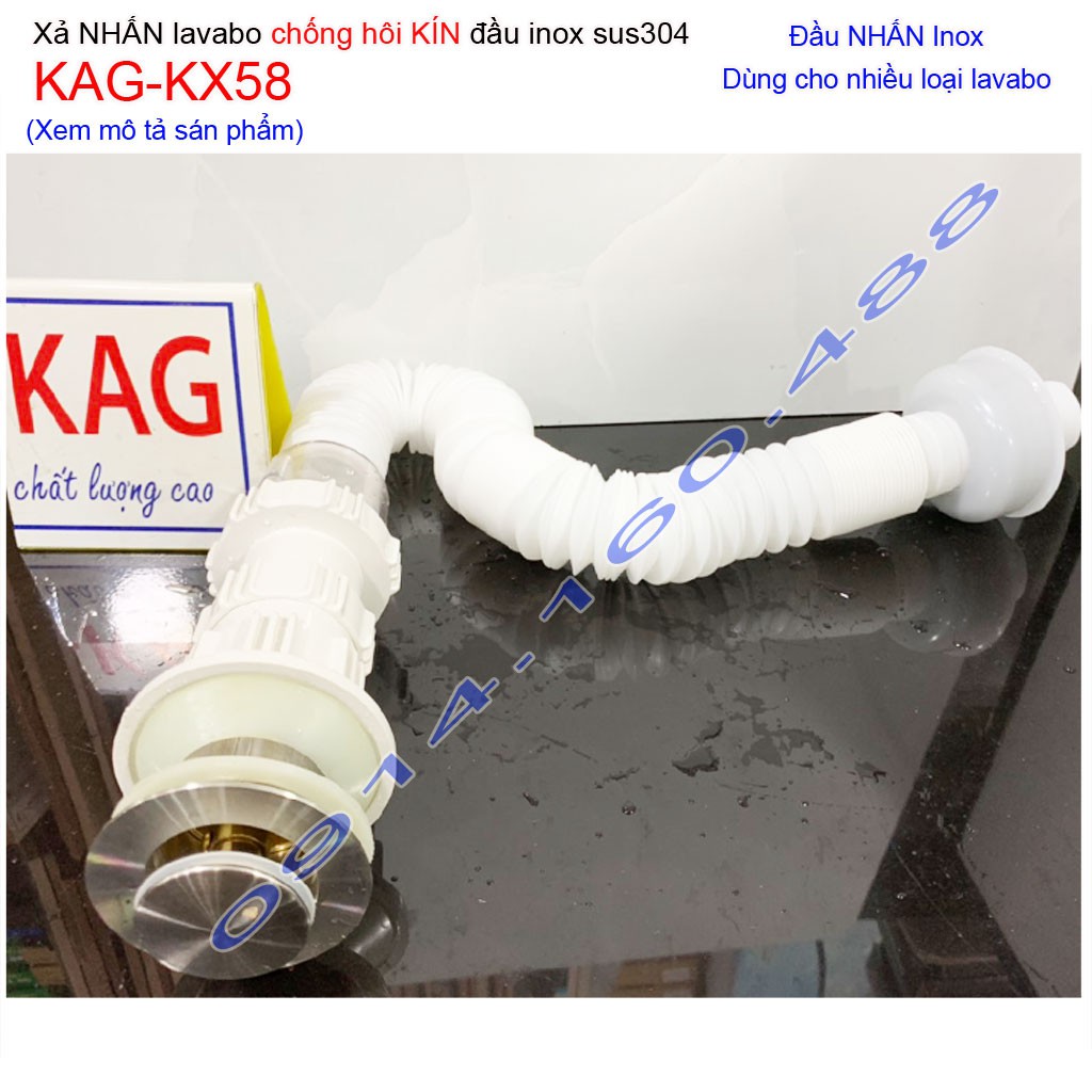 Xả nhấn tay lavabo KAG-KX58 chống trào ngược ngăn mùi hôi, bộ xả chậu rửa mặt thoát nước nhanh co bẻ ( xả ruột gà nhựa)