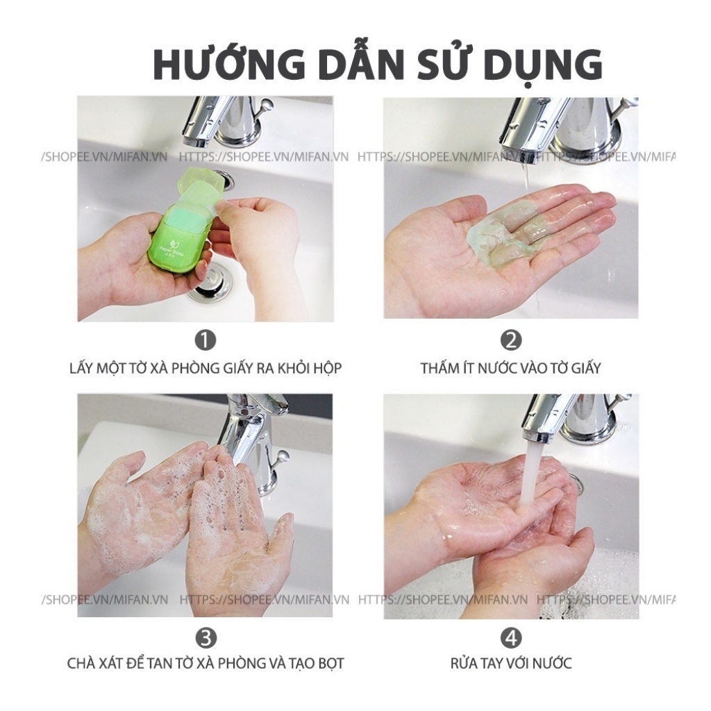 Giới thiệu Xà Phòng Giấy - 50 Miếng/Hộp - Xà Bông Rửa Tay, Bỏ Túi Mang Đi Du Lịch, Công Tác, Dã Ngoại - MIFAN