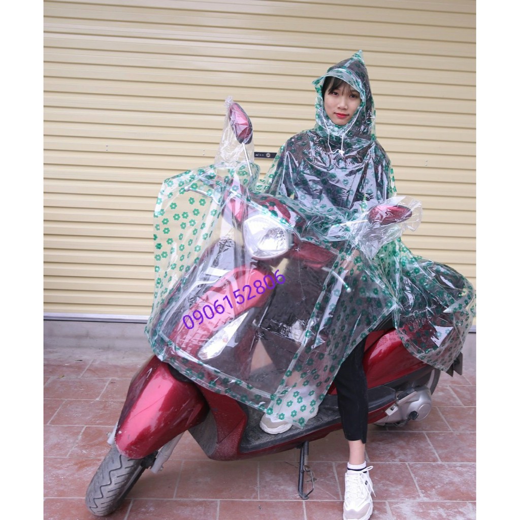 Áo mưa choàng họa tiết nhựa trong tai thỏ cao cấp Chúc Sen : Xỏ gương thông minh, tiện lợi. Tuyệt đối không lo nước vào qua khe gương như áo mưa thông thường nữa.