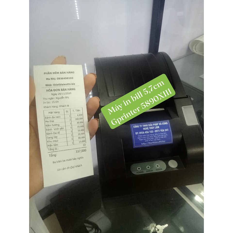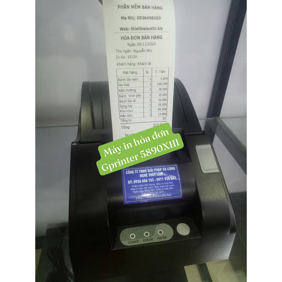 Máy in hóa đơn bán hàng qua điện thoại và máy tính khổ giấy 5,7cm Gprinter GP-5890XIII. Có cổng kết nối USB & Wifi. Giúp in hóa đơn bán hàng từ các phần mềm bán hàng trên máy tính hoặc app bán hàng trên điện thoạiMáy in hóa đơn Gprinter GP-5890XIII khổ giấy 5,7cm tốc độ in nhanh lên tới 90mm/s. Thiết kế sang trọng đẹp mắt, mở nắp máy thuận tiện như các máy khổ 8cm. Dùng để in hóa đơn bán hàng tại các cửa hàng như shop thời trang, minimart, tạp hóa, quán cafe, bida...