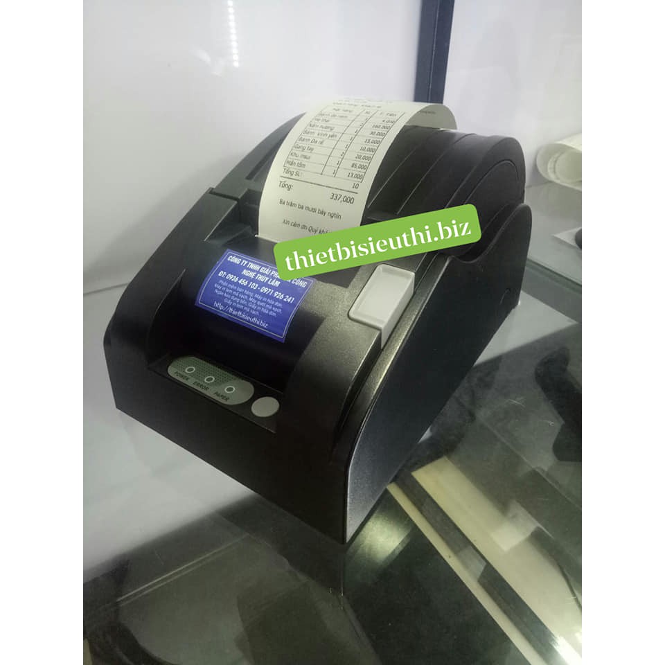 + Nhược điểm: In xong phải xé giấy theo răng cưa (không tự động cắt như máy 8cm), Khổ giấy hơi nhỏ chỉ 5,7cm
