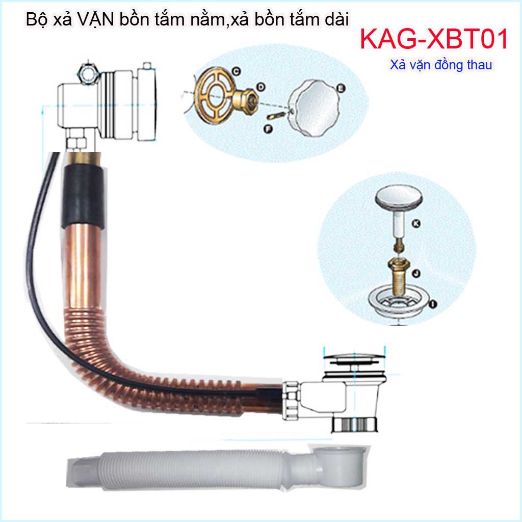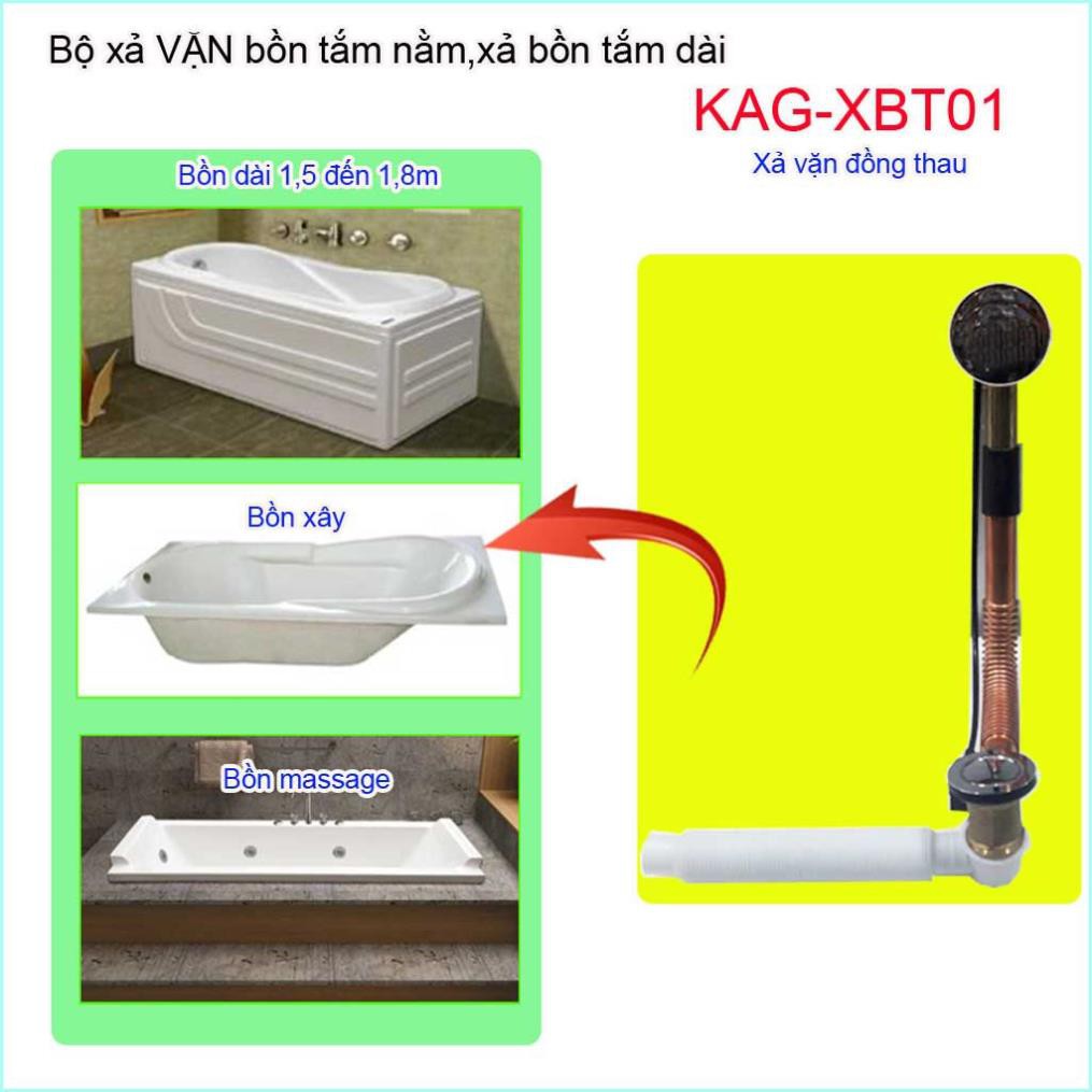 Ưu điểm: Xả vặn bồn tắm bằng thau, Bộ xả dùng cho bồn tắm nằm KAG-XBT01 làm bằng chất liệu đồng thau, siêu bền, sử dụng cho các công trình cao cấp như khách sạn, resort...