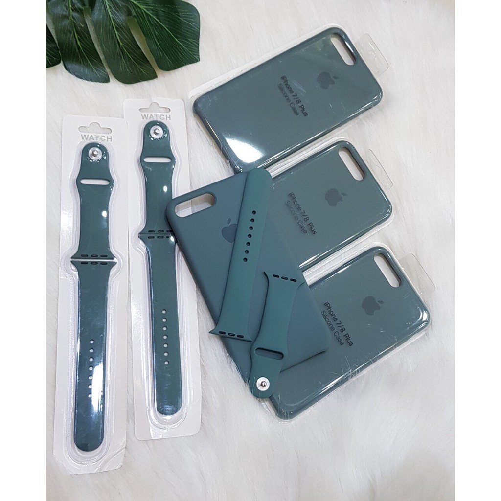 [XANH RÊU NHẠT] ỐP SILICONS CHỐNG BẪN VÀ DÂY ĐEO APPLE WATCH CÙNG MÀU CHO DÒNG IPHONE