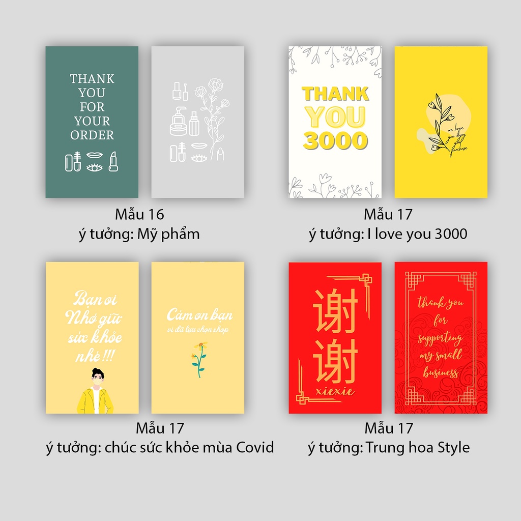 Xấp 10 card cám ơn, thiệp cảm ơn hoặc Thank you card dành riêng cho shop bán hàng dùng để tặng khách hàng