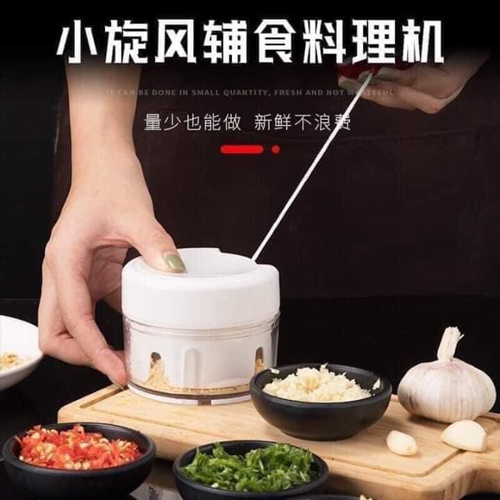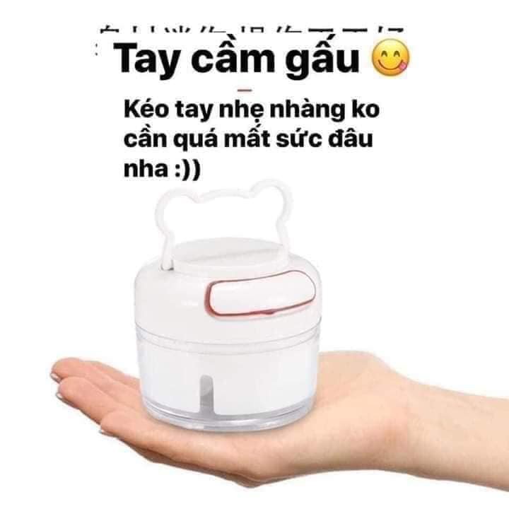 Cực dễ dàng, chỉ cần cho đồ vào, đậy nắp, kéo & thả phần dây kéo liên tục, dây kéo sẽ làm quay lưỡi cắt bên trong, xay nhuyễn đồ ăn không hề vất vả. Dùng được mọi lúc mọi nơi, ko cần điện.