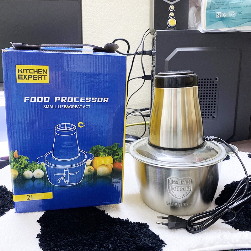 [ Xay mọi thứ ] Máy Xay Thịt Đa Năng KITCHEN EXPERT Inox Thép Không Gỉ 4 Lưỡi Dao Dung Tích 2L Công Suất 250W 2 Chế Độ