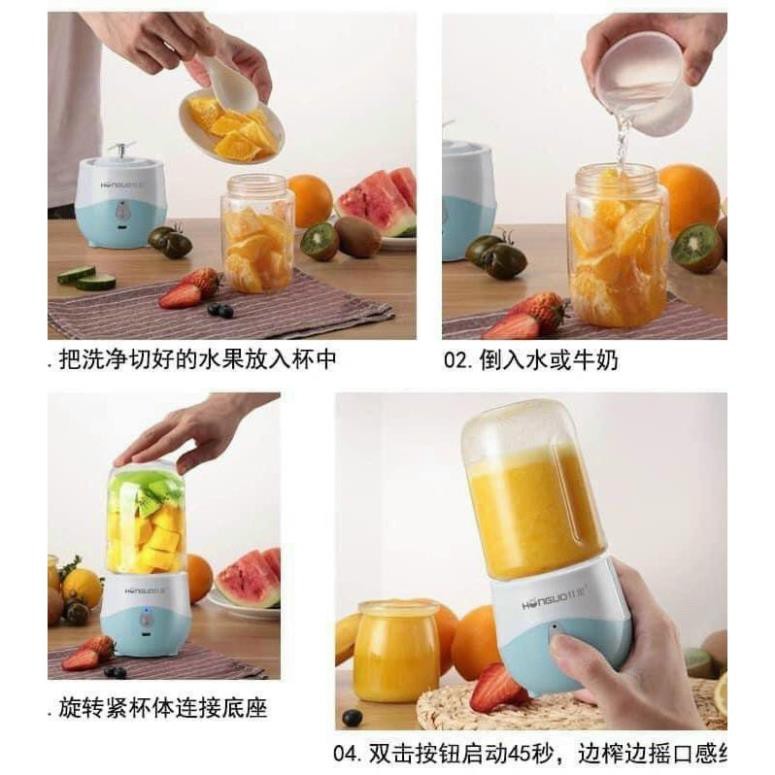 Xay sinh tố cầm tay pin sạc Honguo 300ml