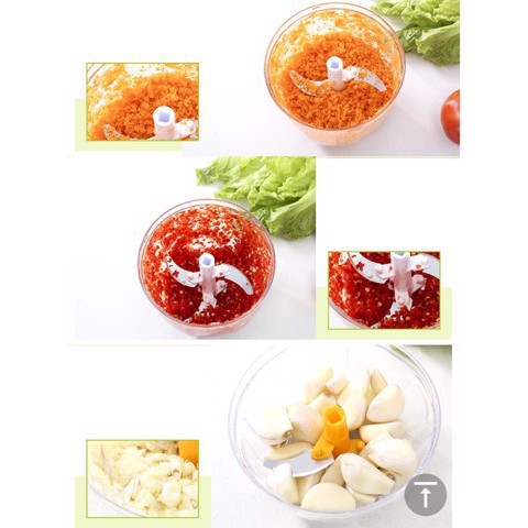 - Là giải pháp hữu hiệu giúp công việc bếp núc của bạn trở nên đơn giản và chuyên nghiệp hơn. Khi sử dụng, bạn chỉ cần đặt sản phẩm cần băm, cắt vào bên trong, sau đó dùng tay kéo thanh kéo ở trên nắp là lưỡi dao phía dưới tự động băm nhuyễn thực phẩm. Khi dùng thao tác lưỡi dao vừa xắt, vừa xoay tròn, làm nhuyễn thực phẩm nhanh chóng.