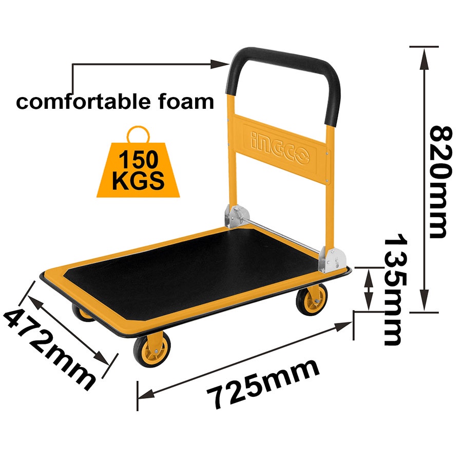 Nhà cửa & Đời sống > Dụng cụ & Thiết bị tiện ích > Xe đẩy || Xe 4 bánh INGCO 150kg đẩy kéo hàng hoá bằng tay có thể gập xếp lại HPHT11502 - Có chứng nhận an toàn thực nghiệm GSCòn hàng