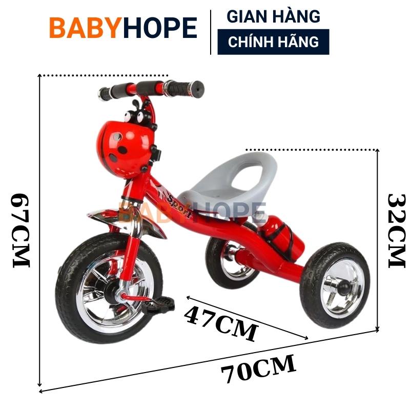 Xe ba bánh trẻ em hình con bọ rùa xinh xắnDòng xe ba bánh trẻ con 616D nhỏ nhắn, xinh xinh vậy thôi nhưng lại sở hữu muôn vàn lợi ích đối sở hữu các bé. Là mẫu xe vận hành 100% từ sức đạp của chân và sự khéo léo của đôi tay nên đây sẽ là công cụ có ích để bé đoàn luyện thể lực và kỹ năng phản xạ. Đây cũng sẽ là người bạn giúp bé làm cho quen thao tác để bé sớm biết đi xe đạp hai bánh sau này