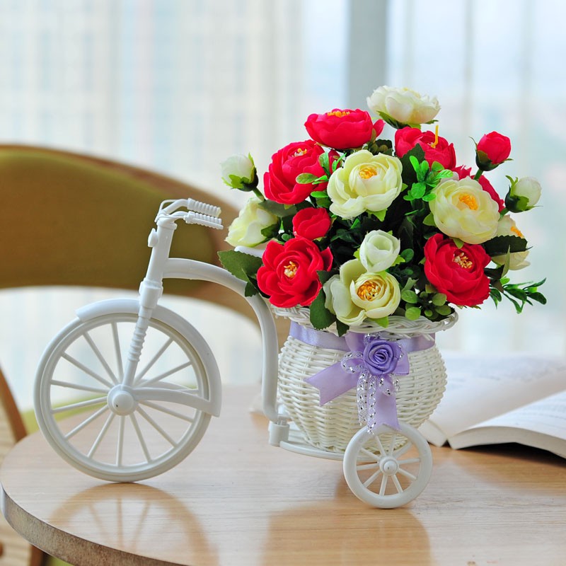 Nhà cửa & Đời sống > Trang trí nhà cửa > Hoa trang trí || Xe đạp gắn giỏ hoa hồng hungary để bàn trang trí (cắm sẵn y mẫu)Còn hàng