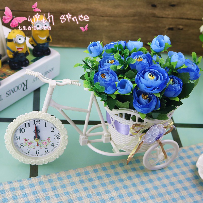 Xe đạp gắn giỏ hoa hồng hungary để bàn trang trí (cắm sẵn y mẫu)