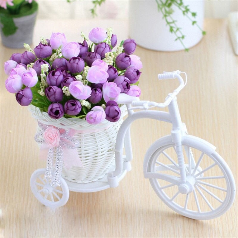 Chiếc xe đạp hoa độc đáo giúp cắm cây hoa giả trang trí vô cùng độc đáo và ấn tượng Kích thước: cao 12cm, dài 21cm, độ rộng xe 11cm