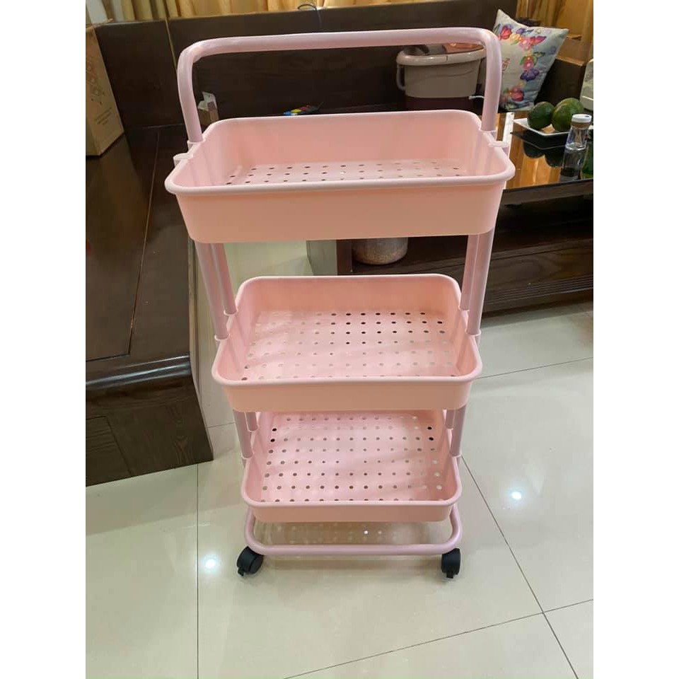 Xe đẩy 3 tầng spa chất liệu nhựa siêu bền, khung sắt có bánh xe đa năng, kệ để đồ trang điểm
