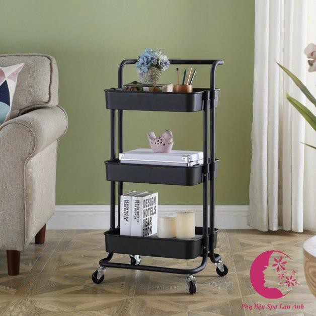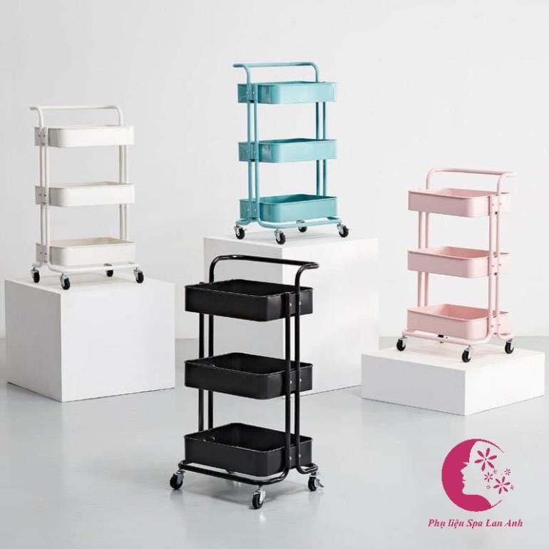 Xe đẩy 3 tầng spa có bánh xe đa năng, kệ để đồ trang điểm - SPAMALL