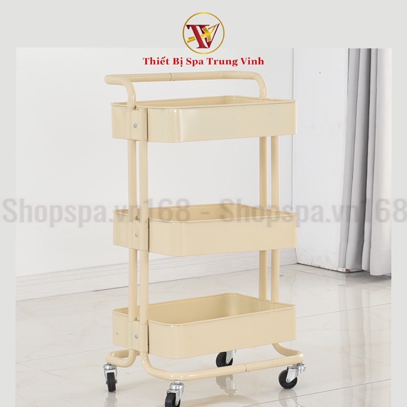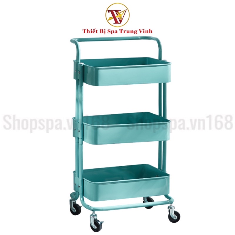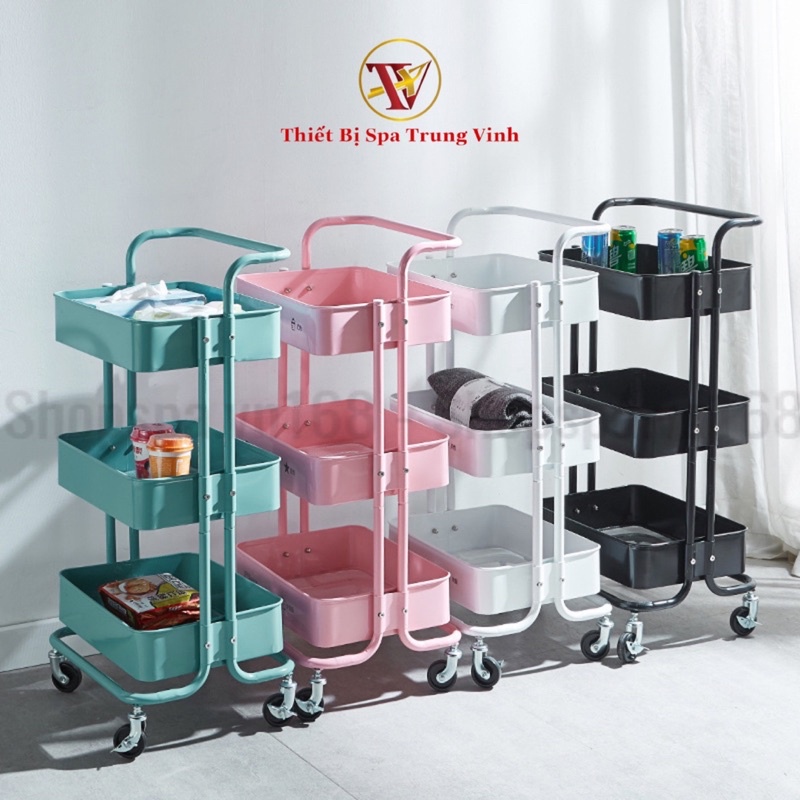 Xe Đẩy 3 Tầng Trang Trí Tiện Lợi Cao Cấp Chính Hãng Đa Năng Nhựa ABS Có Bánh Xe Chịu Lực 50kg Hồng Xanh Trắng 42*35*87