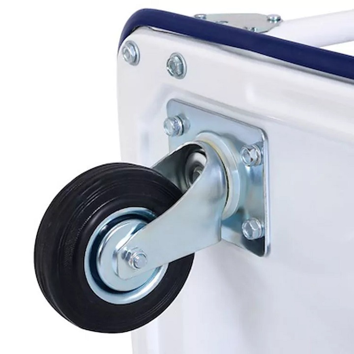 ✔️ Bánh xe được làm từ PU giúp giảm ma sát với mặt đường vận chuyển, giúp người dùng tiết kiệm sức lực khi đẩy hàng.