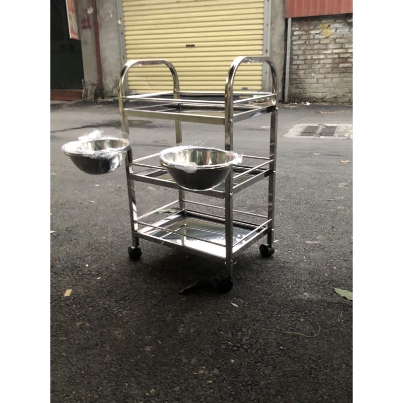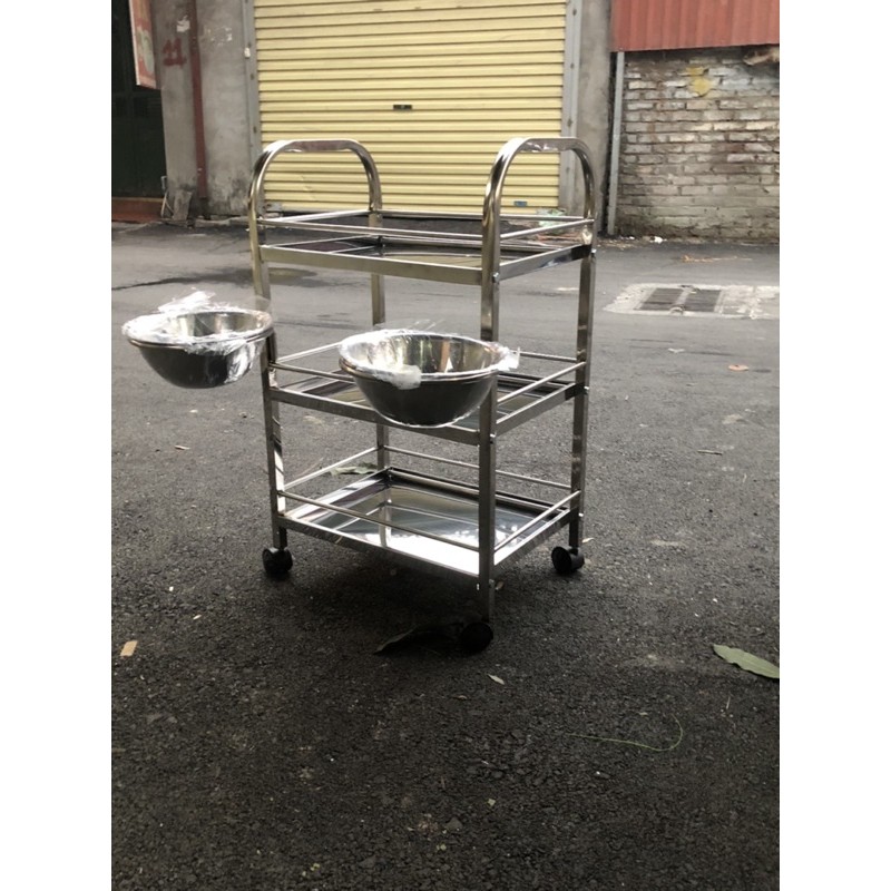 - Xe để dụng cụ bằng inox- Sẵn 2 bát nước
