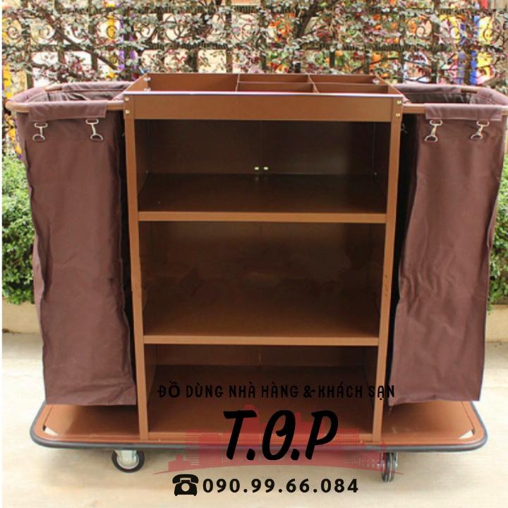 Xe Đẩy Dọn Phòng Khách Sạn Túi Vải 2 Bên