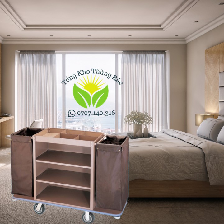 - Xe dọn phòng hay xe chở đồ giặt ủi, là thiết bị quen thuộc tại các khách sạn và khu nghỉ dưỡng có quy mô lớn, thể hiện rõ nét sự chuyên nghiệp trong khâu chuẩn bị và dịch vụ chăm sóc khách hàng.