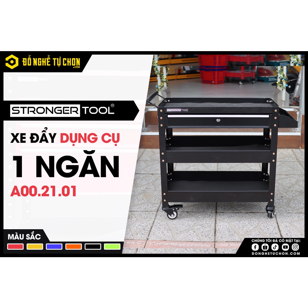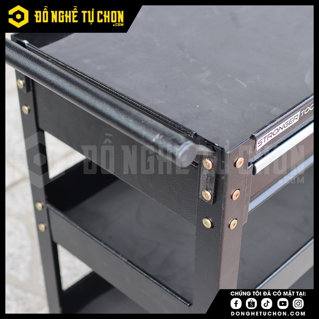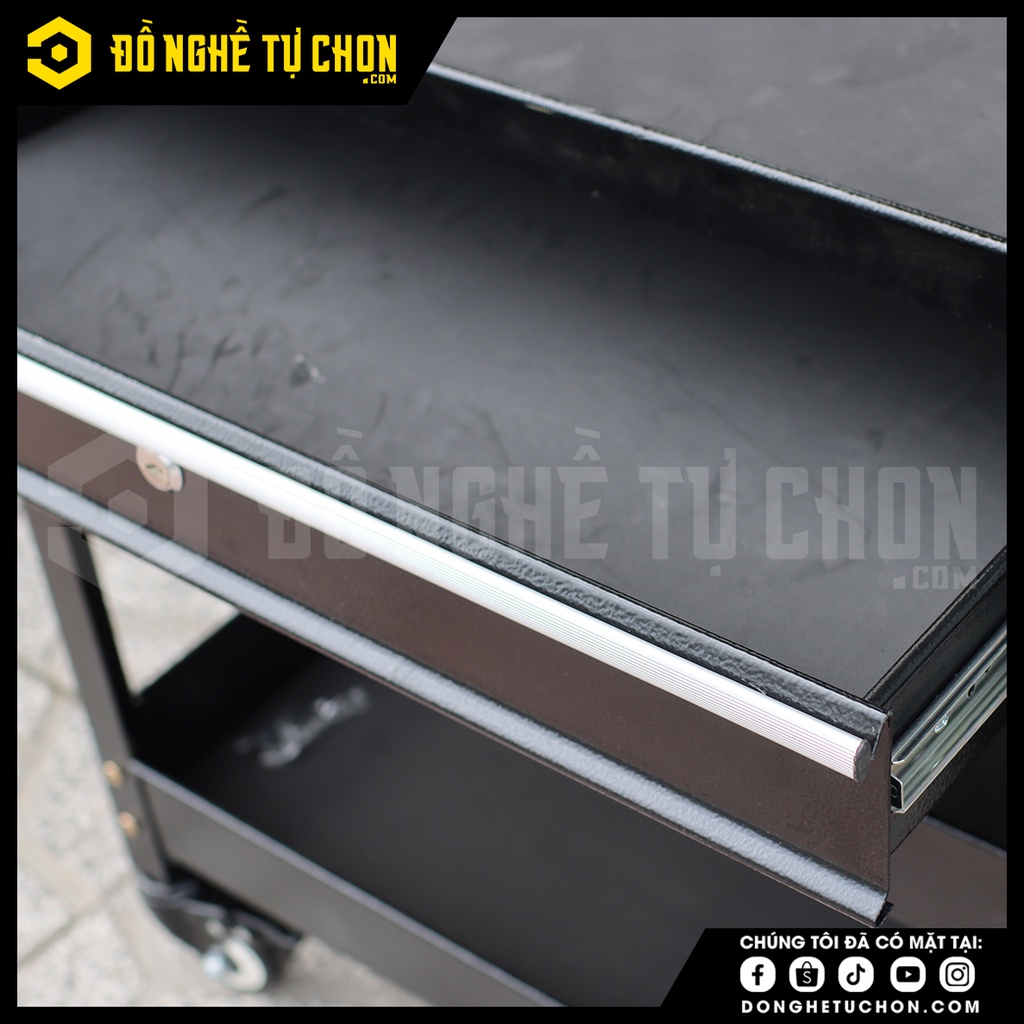 XE ĐẨY DỤNG CỤ 3 KHAY 1 NGĂN KÉO - TC1.A00.21.01Xe đẩy có khung thép vững chắc, sơn tĩnh điện 4 bánh xe ( 2 bánh xe có khóa, 2 bánh không khóa). Di chuyển ổn định, linh động với góc quay nhỏ. Sản phẩm phù hợp để dụng cụ, đồ nghề và các linh kiện trong gara sửa xe máy. ô tô, xưởng công nghiệp… và nhiều ứng dụng khác