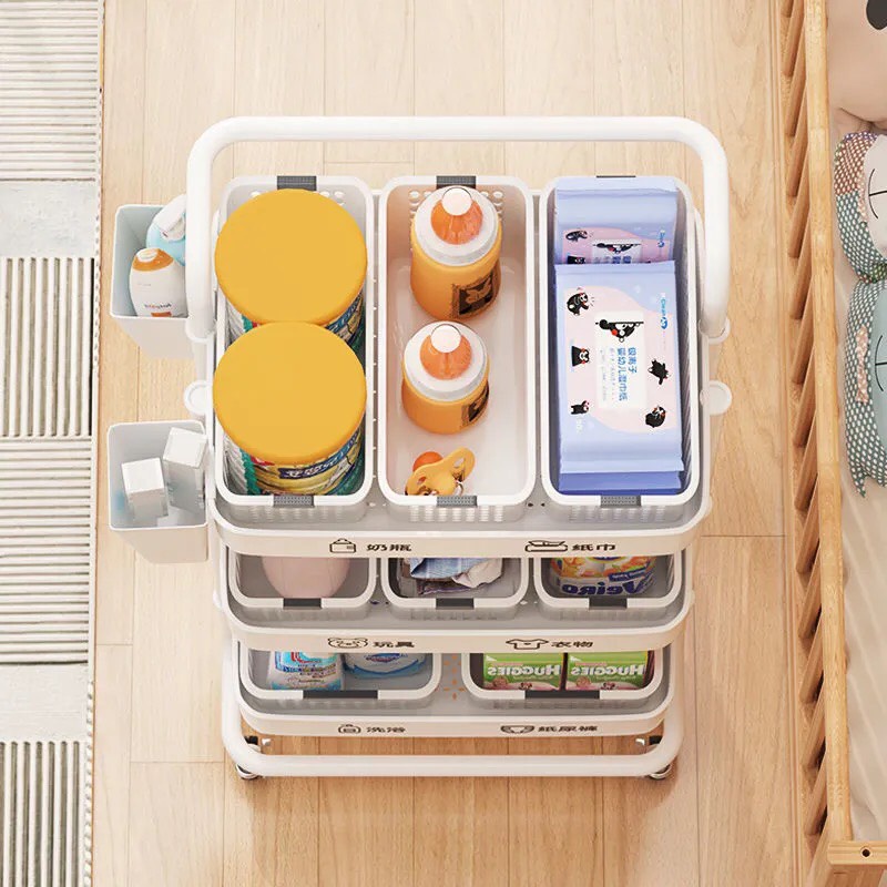 Công dụng: Xe đẩy giúp thu dọn gọn gàng đồ tã bỉm của em bé, giúp căn phòng của các mẹ không còn bừa bãi. Nhưng như các bạn thấy đó, thực ra em xe đẩy này đựng gì cũng được hết á, chúng mình có thể đựng đồ ăn vặt, bim bim nè, nước uống nè. Quan trọng là em nó vừa tiện lợi lại vừa đẹp mắt nữa ^^