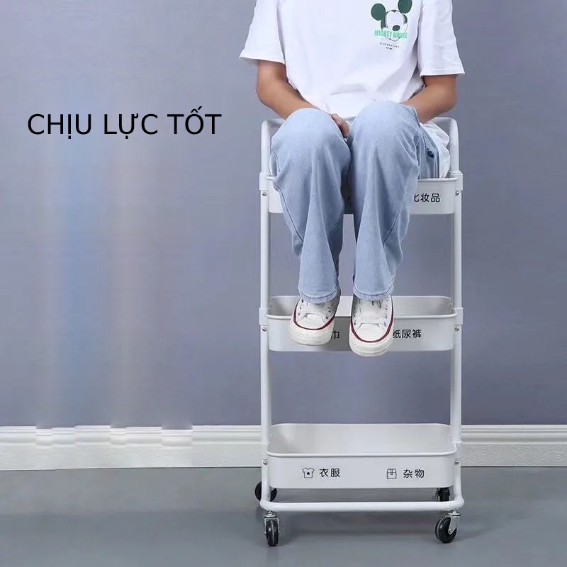 Xe đẩy đựng đồ 3 tầng có bánh lăn tiện dụng