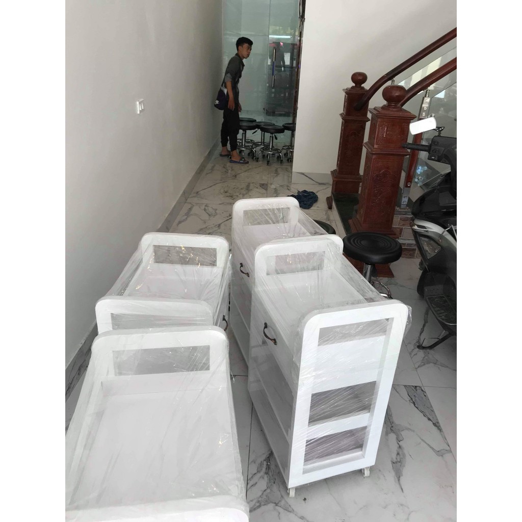 Là sản phẩm không thể thiếu dành cho các spa để thiết bị và các dụng cụ thẩm mỹ, có 4 bánh xe đẩy rất nhẹ nhàng, kệ nặng và chắc chắn với lớp sơn trắng bền đẹp phù hợp cho không gian Spa thẩm mỹ viện