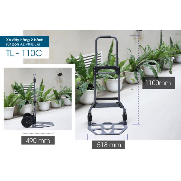- Xe đẩy hàng 2 bánh rút gọn Advindeq TL-110C: Đây là dòng xe đẩy hàng nhỏ gọn, thông minh và bán chạy nhất trên thị trường hiện nay. Giá cả cạnh tranh mạnh so với các dòng xe cùng loại. Xe có một số ưu điểm sau đây: