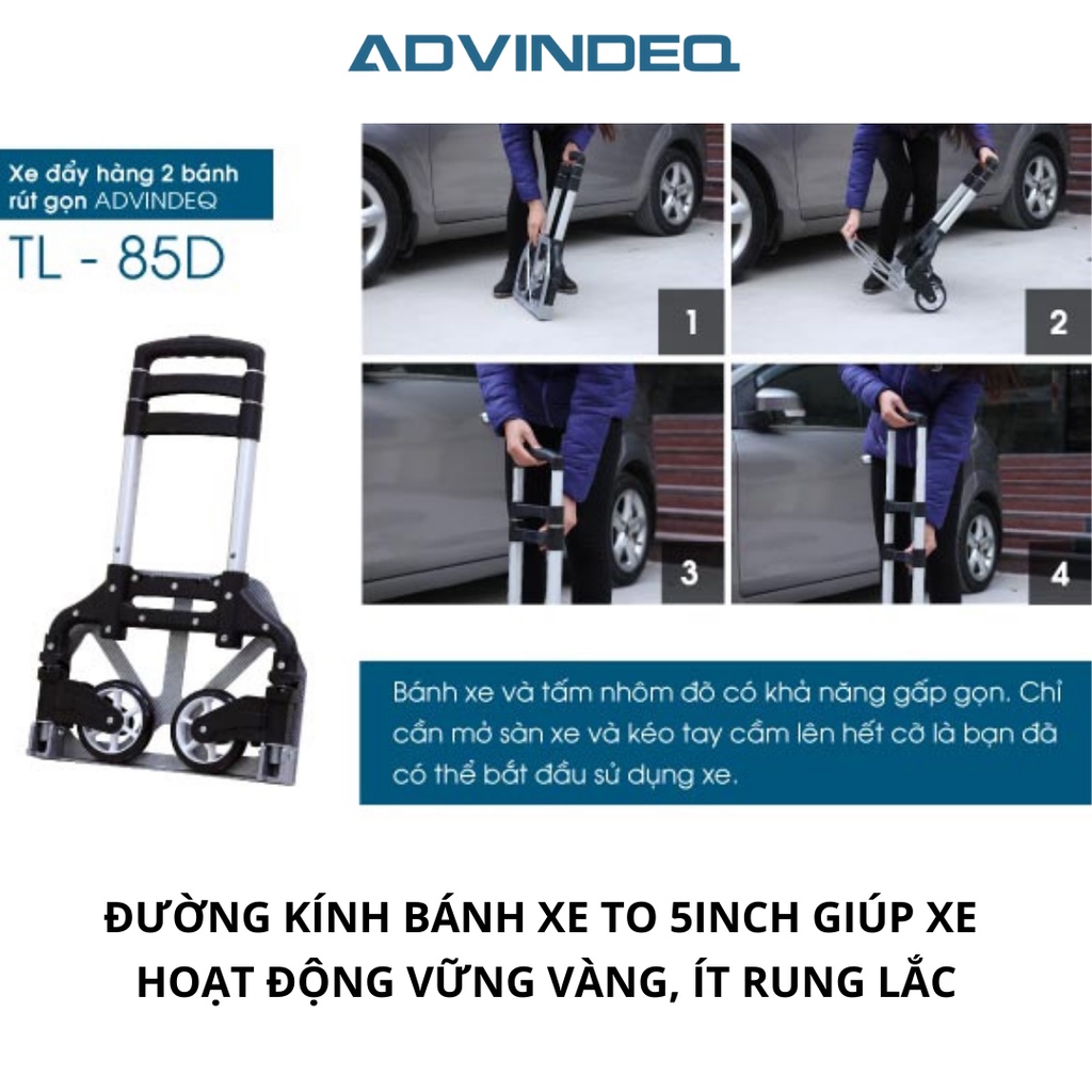 Xe đẩy hàng 2 bánh gấp gọn ADVINDEQ TL-85D, xe đẩy hàng công nghệ Đài Loan cao cấp, tải trọng 85kg