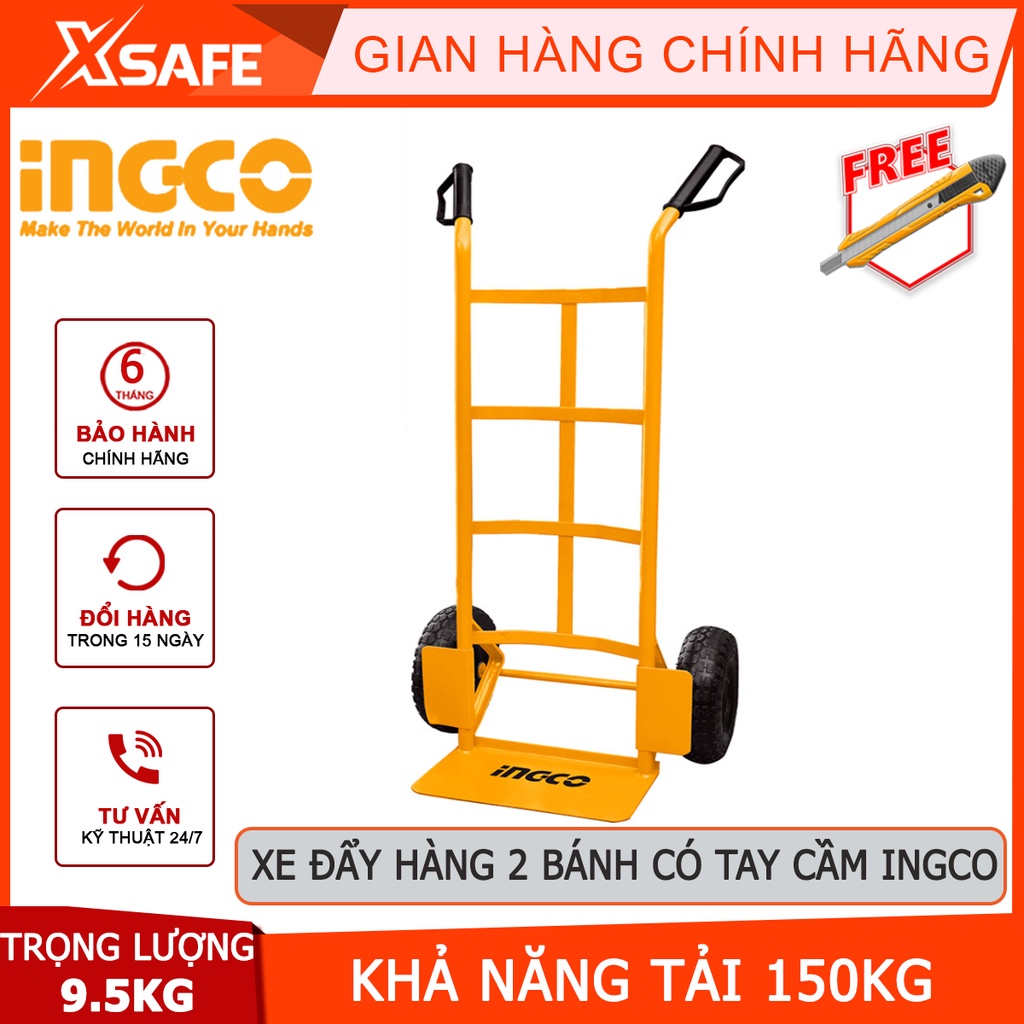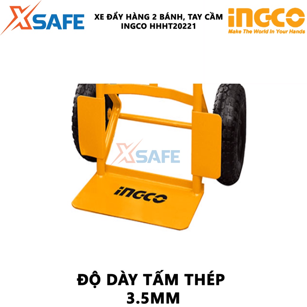 Giới thiệu Xe đẩy hàng 2 bánh INGCO HHHT20221 Xe kéo hàng cầm tay khả năng tải 150kg, độ dày tấm thép 3.5mm, bánh xe khí nén -XSAFE