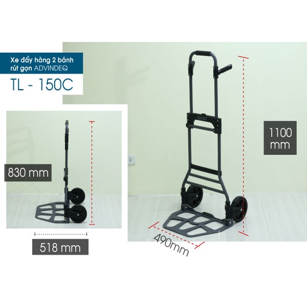 1. Xe đẩy hàng 2 bánh rút gọn ADVINDEQ TL-150C - TẢI TRỌNG CHỞ 150KG