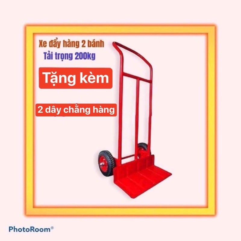 Xe đẩy hàng 2 bánh chuyên chở vận chuyển hàng hóa 2 bánh như hình và tải trọng lên đến 200kg khung và bánh to dày chắc chắn. Tặng kèm 2 dây chằng hàngBánh xe mới tinh ko phải tái chế