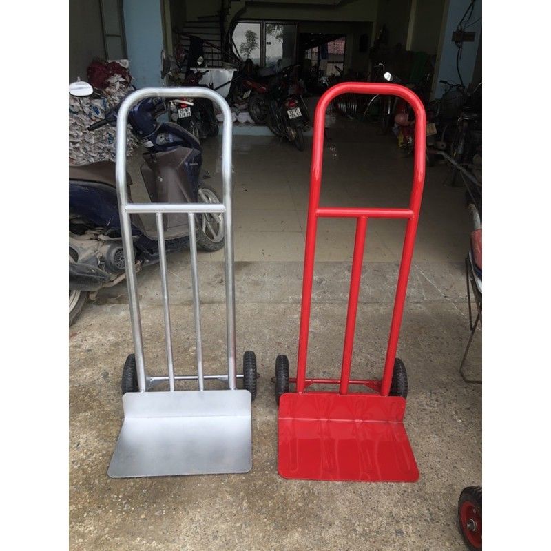 - Xe đẩy hàng 2 bánh khung thép chống gỉ có 2 loại sơn tĩnh điện đỏ và loại sơn tay màu trắng