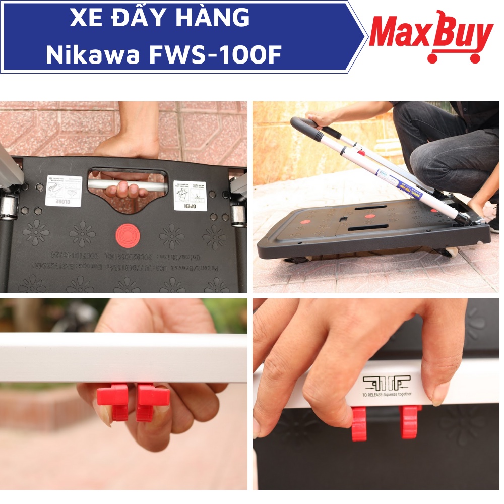 4. Maxbuy cam kết về sản phẩm Xe đẩy hàng, xe kéo hàng Nikawa FWS-100F, 4 bánh, tải trọng 100kg, sàn nhựa, bảo hành chính hãng 18 tháng.