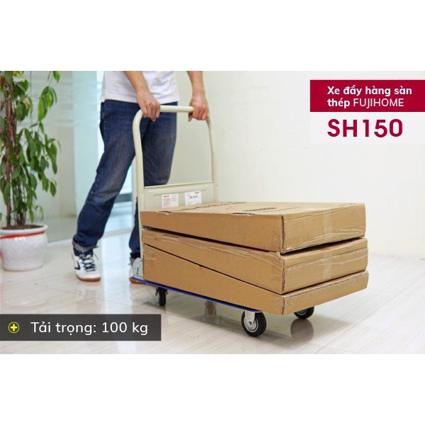 ⛔ XE ĐẨY HÀNG SÀN THÉP 4 BÁNH FUJIHOME SH150 (TẢI TRỌNG 100KG)