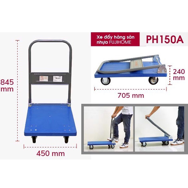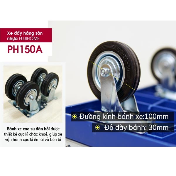 1. ✅ XE ĐẨY HÀNG SÀN NHỰA PH150A (TẢI TRỌNG 100KG)